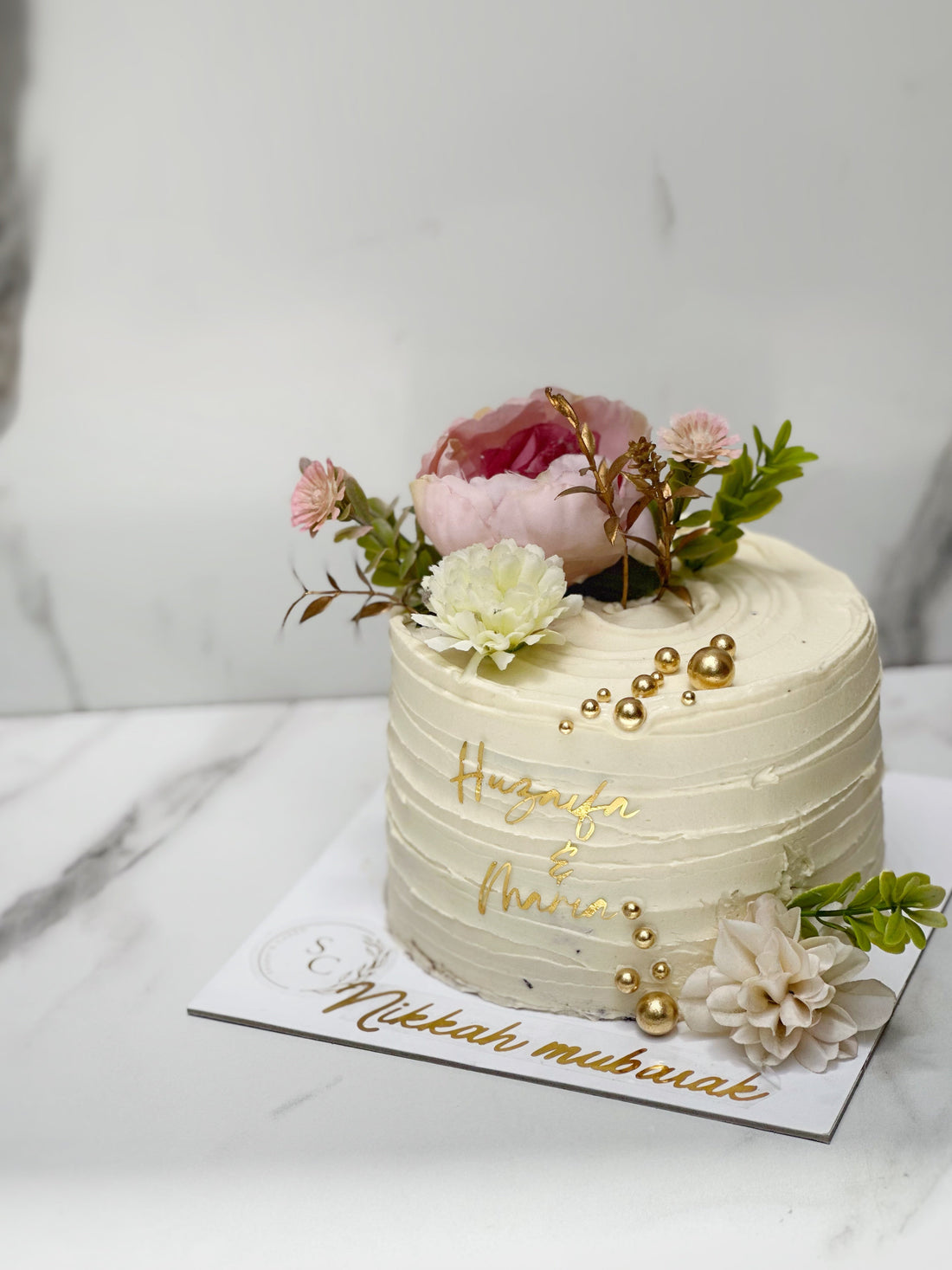 butter cream base with fake flowers