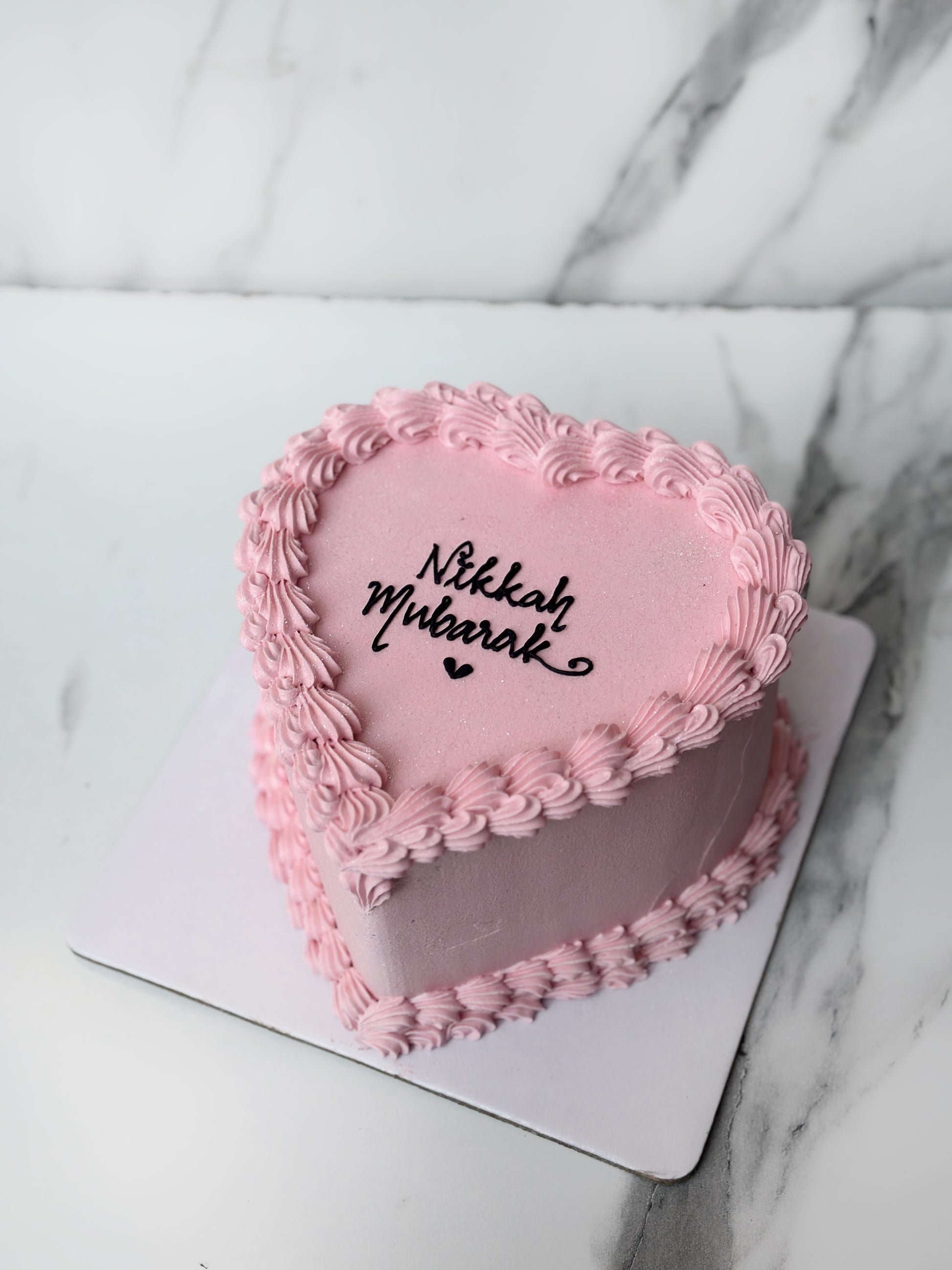 3 pound heart vintage cake with edible glitter.