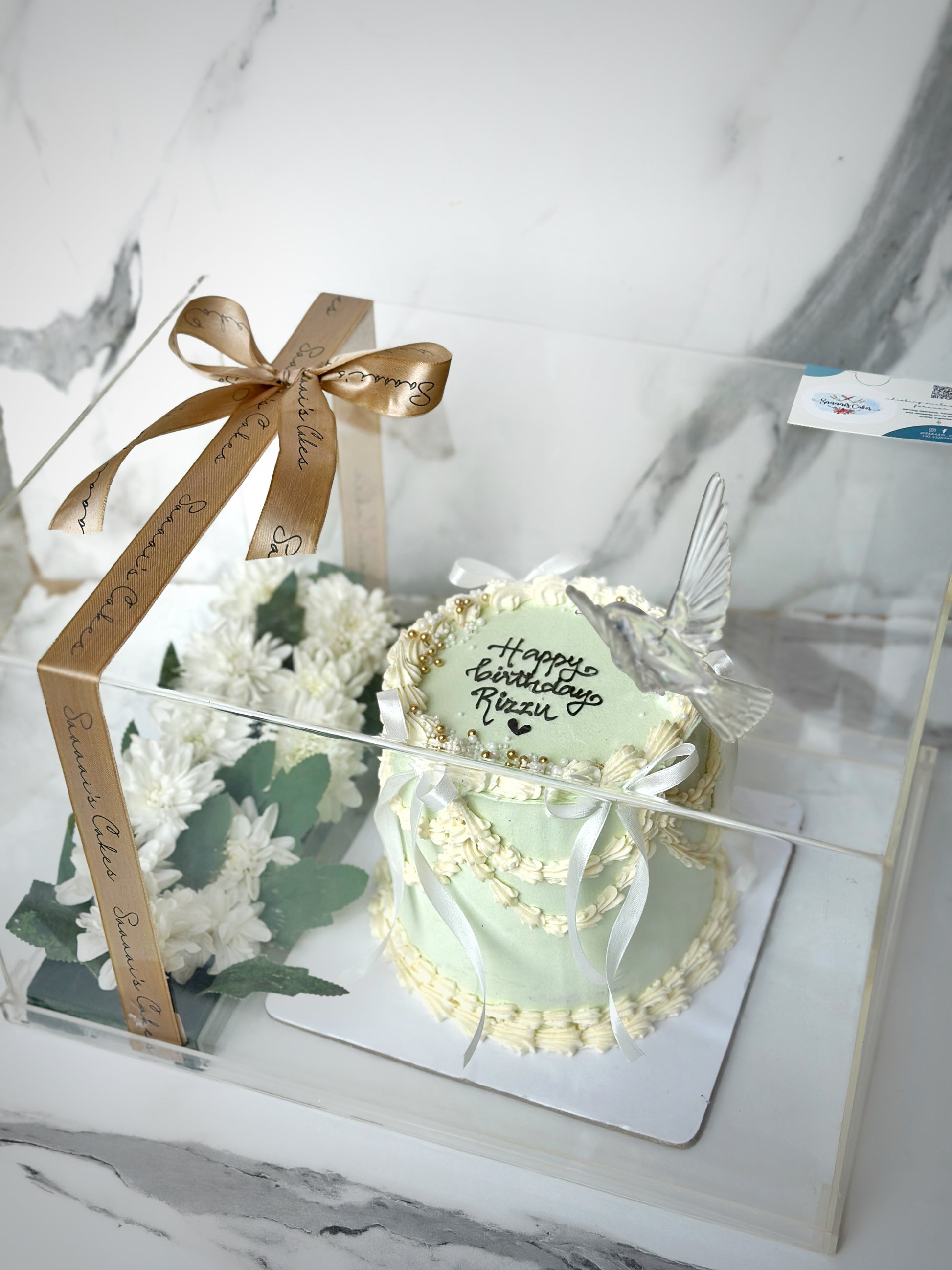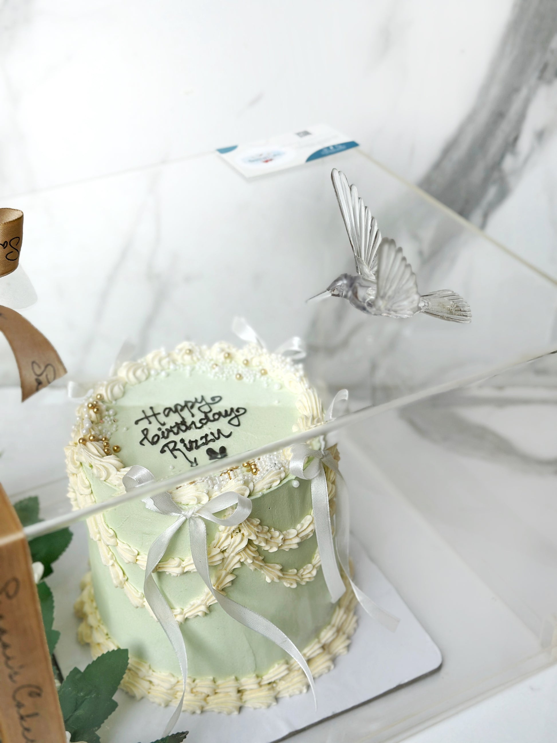 Acrylic bird on top for decor