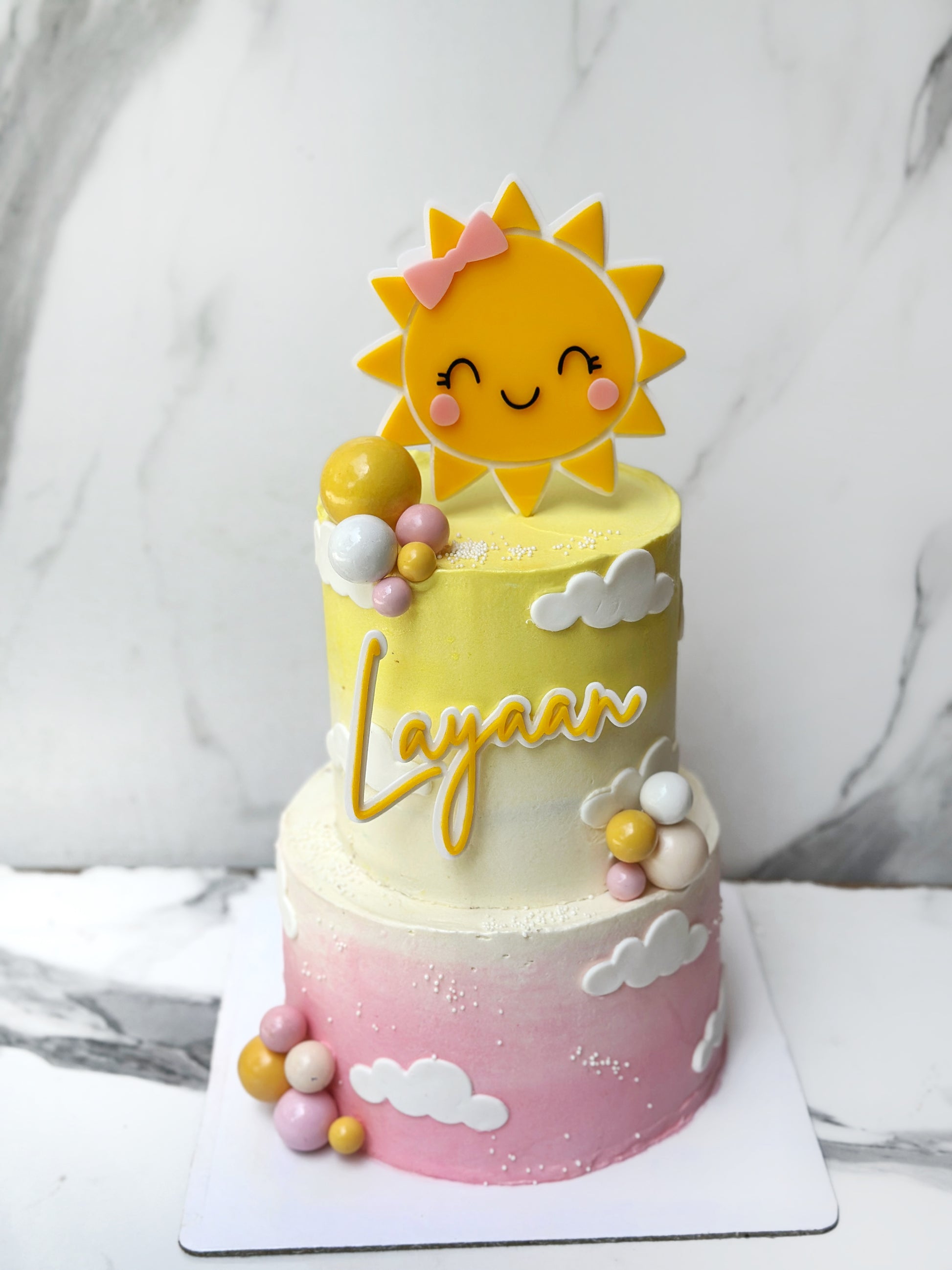 Includes custom acrylic toppers